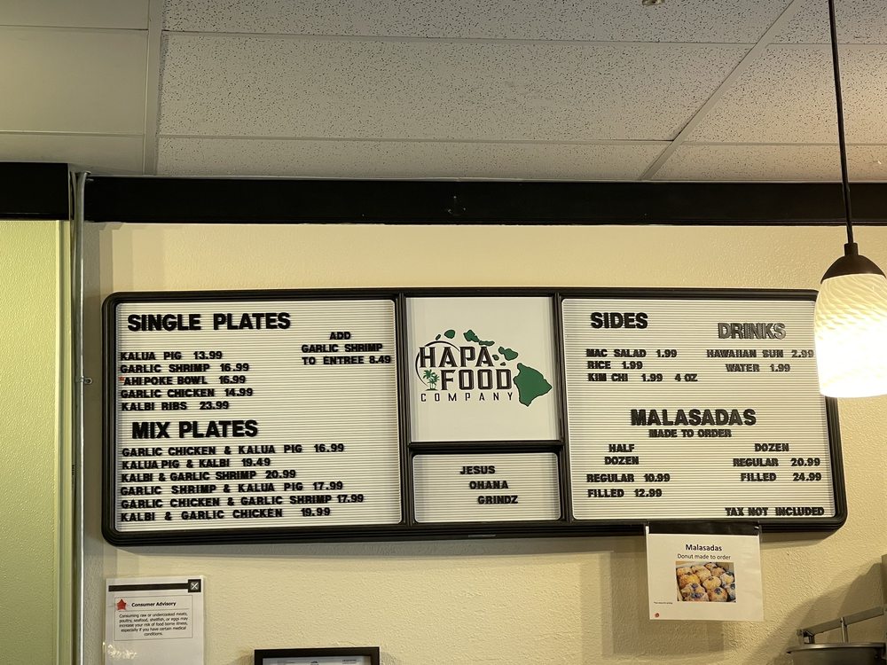 Hapa Food is a barbecue joint located in Mesa, AZ offering a range of delicious Hawaiian-inspired dishes. Their menu includes single plates like Garlic Chicken, Kalua Pig, and Kaldi Ribs, as well as mix plates combining favorites like Kalbi and Garlic Shrimp. Customers praise the flavorful dishes, with reviews highlighting the large portions and friendly service. The ambiance inside the restaurant is described as cozy, with island music playing in the background. Diners recommend trying the Ahi Poke and the Hawaiian Sun drink for a taste of authentic Hawaiian flavors. Overall, Hapa Food is a must-visit spot for anyone craving ono Hawaiian grinds in the Mesa area. Cheehoo!